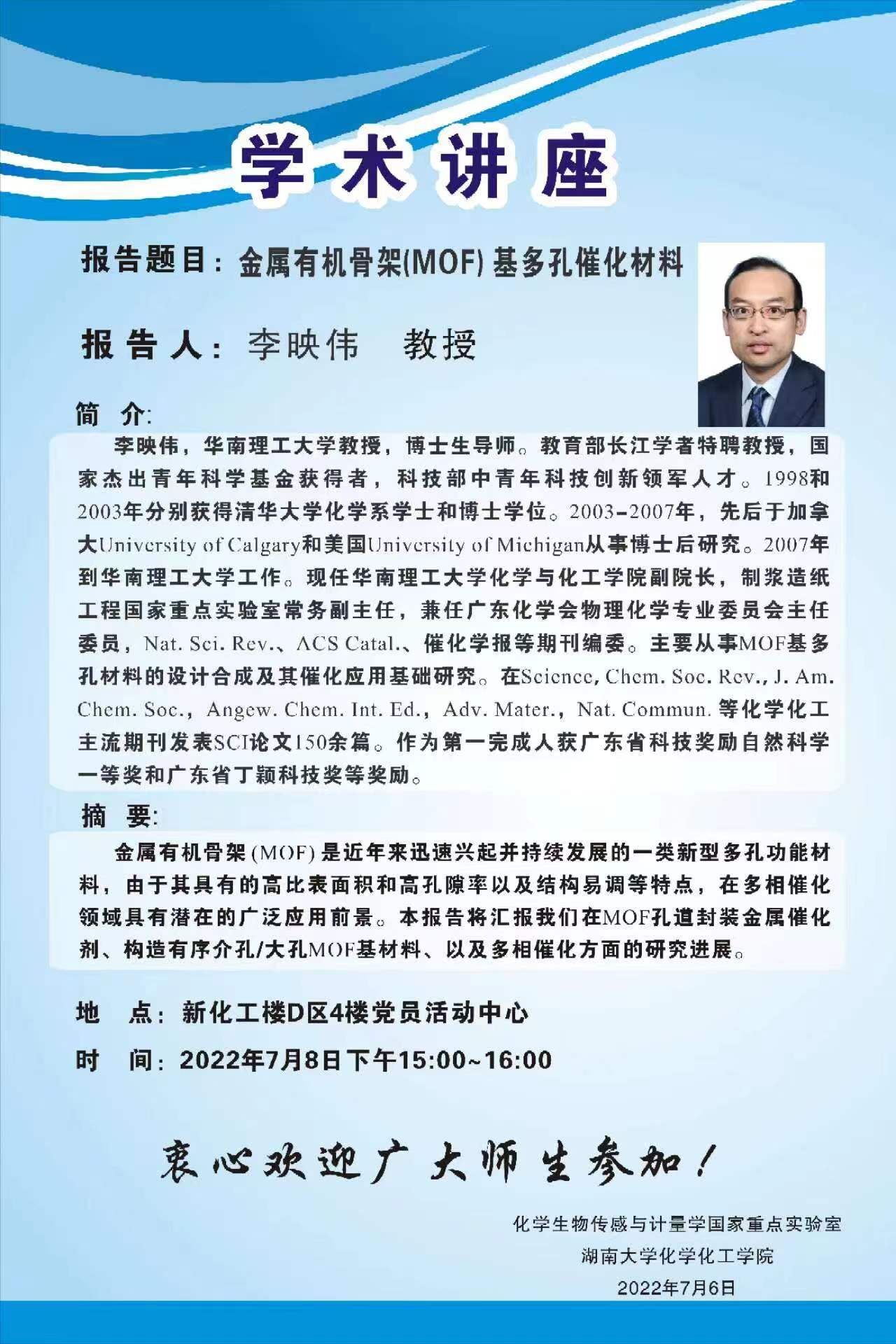 学术地点 新化工楼D区4楼党员活动中心 主讲人 李映伟教授