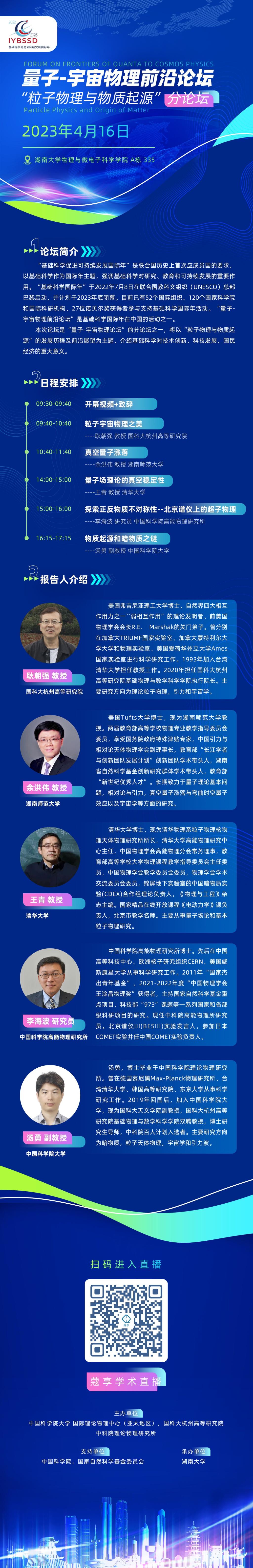 物电院:量子-宇宙物理前沿论坛“粒子物理与物质起源”分论坛