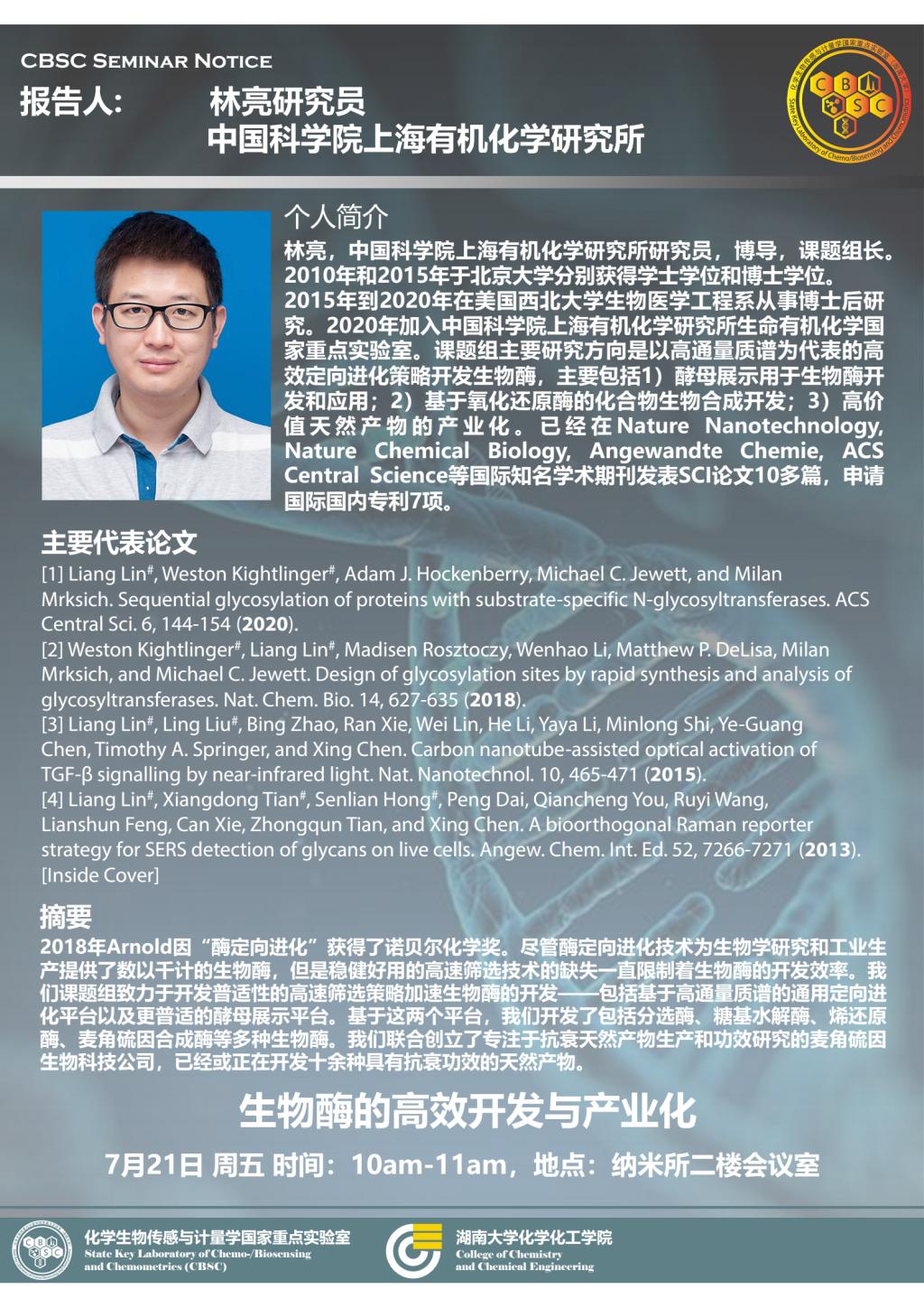 学术地点 纳米所二楼会议室 主讲人 林亮 中国科学院上海有机化学研究所研究员