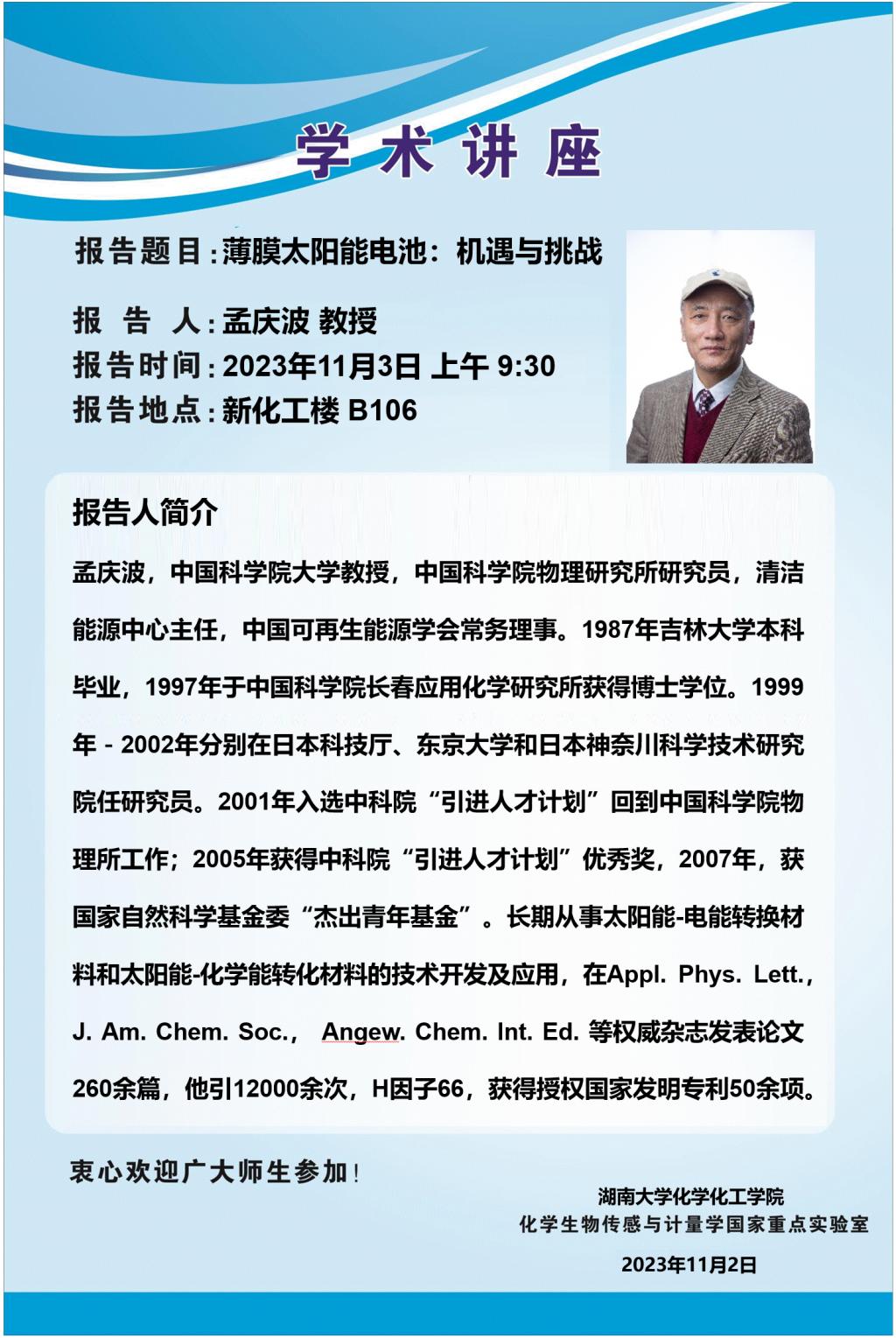 学术地点 新化工楼 B106 主讲人 孟庆波
