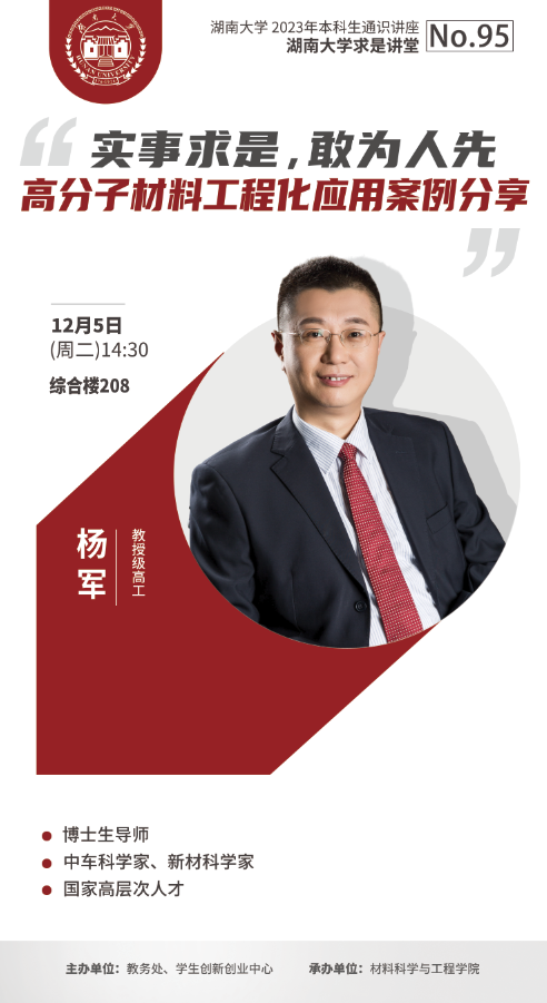 求是讲堂 | 杨军:实事求是,敢为人先——高分子材料工程化应用案例分享