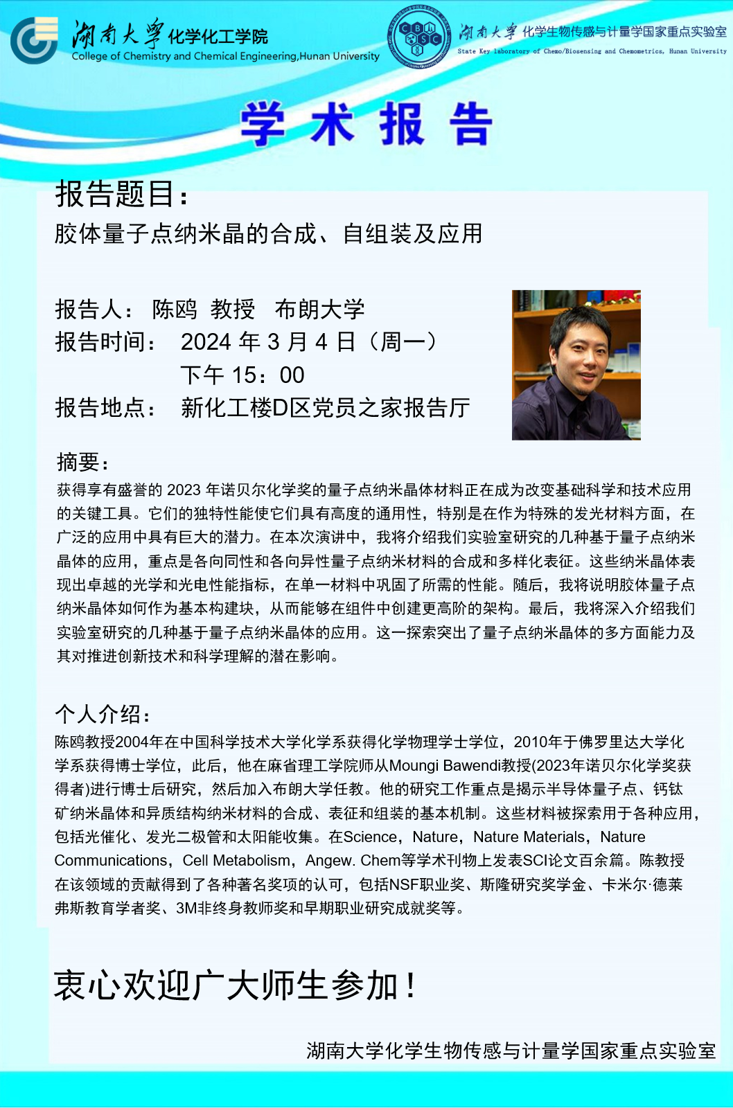 学术地点 新化工楼D区党员之家报告厅 主讲人 陈鸥 教授 布朗大学