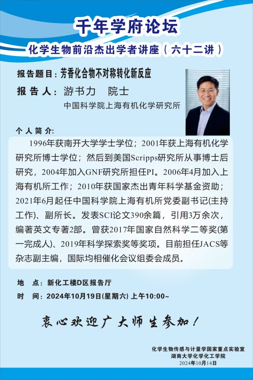 学术地点 新化工楼D区报告厅 主讲人 游书力 院士