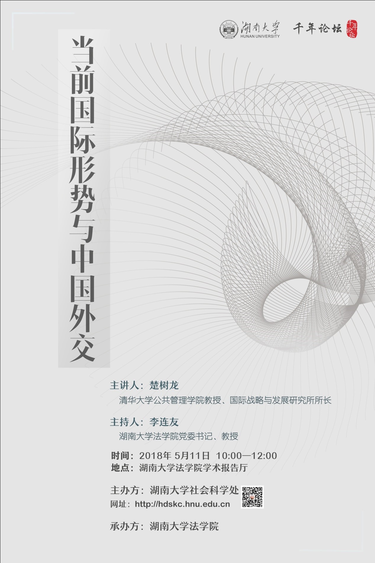 当前国际形势纷繁复杂,国际热点问题层出不穷,国际关系的复杂性直接影响我国外交格局,同时中国外交也将面临更多机遇及挑战。讲座将以中美关系为切入点,深度解析当前中美外交博弈对台海局势、朝鲜问题、中日关系等方面的影响。