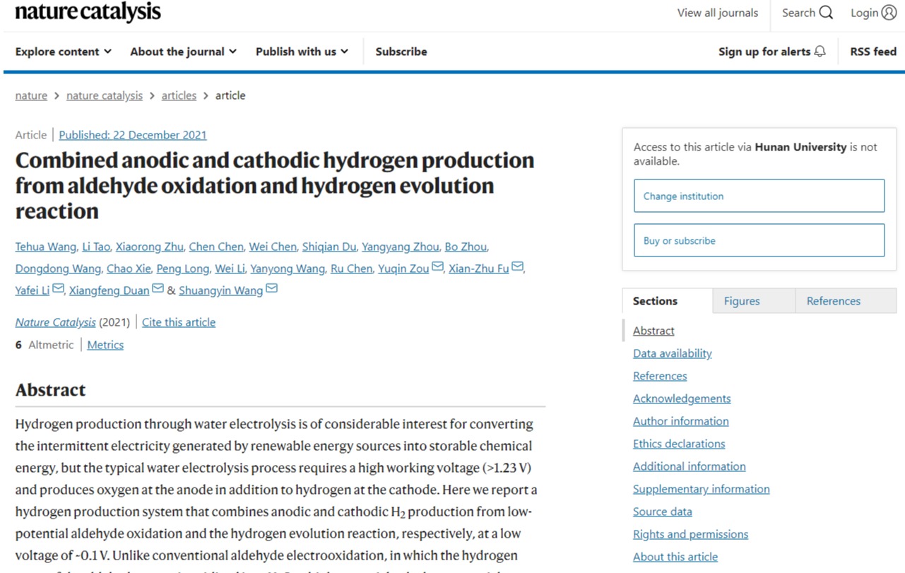 2021/12/23王双印课题组开发出电化学双极制氢技术近日,化学化工学院王双印教授开发出一种阴阳两极同时产氢的电化学双极制氢技术。相关研究以《Combined anodic and cathodic hydrogen production from aldehyde oxidation and hydrogen evolution reaction》为...