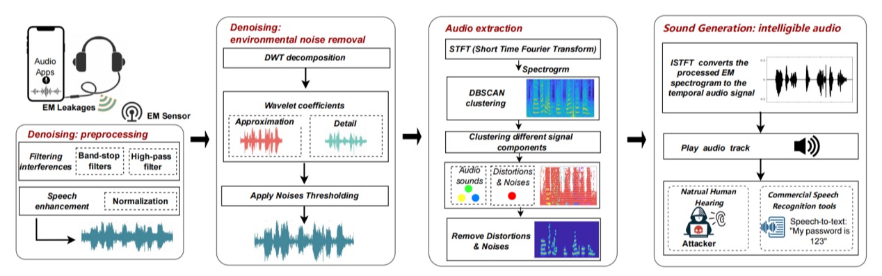 2023/07/04胡玉鹏、靳文强教授团队在移动设备语音泄漏研究中取得进展近日,胡玉鹏教授、靳文强教授团队在移动设备系统安全研究领域取得突破进展,首次发现了移动设备音频电路放大器的低频电磁辐射所导致的用户语音信息泄漏问题。通常,移动设备端音频电路产生的音频信号可通过有线...