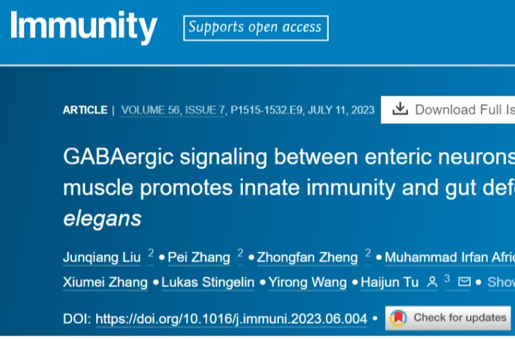 2023/07/15生物学院涂海军教授团队在肠道神经元调控肠道固有免疫研究方面取得进展神经系统对肠道内稳态和功能至关重要,但关于其对肠道固有免疫的影响及其调控机制还不完全清楚。正常的肠道功能依赖于肠神经系统和肠道内固有淋巴样细胞的高度协调反应,肠神经元可以与肠组织中的其他细胞建立功...