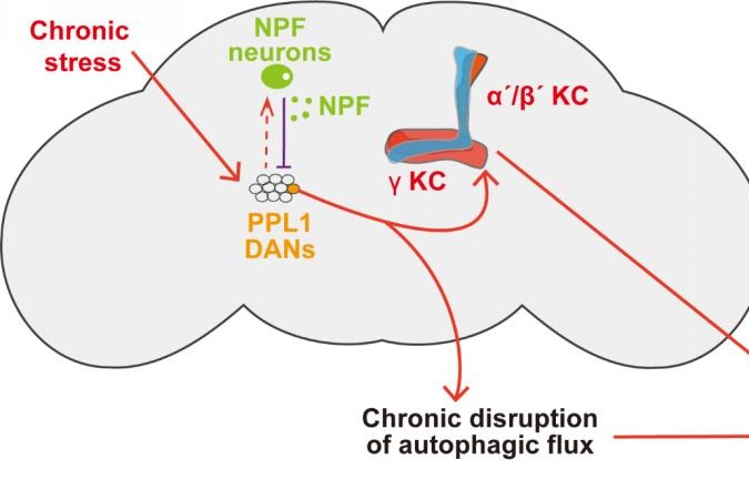 2023/12/15生物学院在抑郁相关认知障碍的神经和分子机制方面取得重要进展12月11日,生物学院覃宏涛团队联合王奕蓉团队报道了细胞自噬的异常与慢性应激诱导学习障碍(Chronic stress-induced learning deficit,CSLD)有关,并证明果蝇神经肽Y样系统通过维持正常自噬流来保护学习能力免...