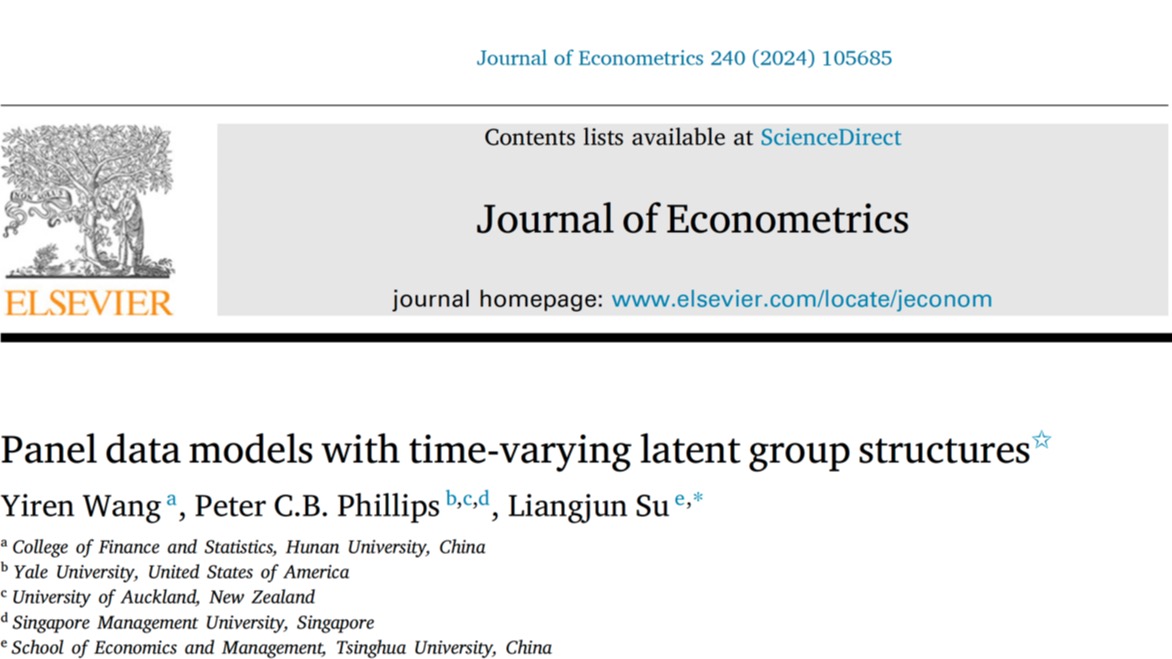 2024/02/04金统院王奕人研究成果在计量经济学顶刊发表近日,金融与统计学院王奕人助理教授在计量经济学领域取得研究进展,研究成果发表在Journal of Econometrics期刊上。该研究为带有时变群组结构的面板数据模型提供了有效的估计算法,同时为时变结构与群组结构估计...