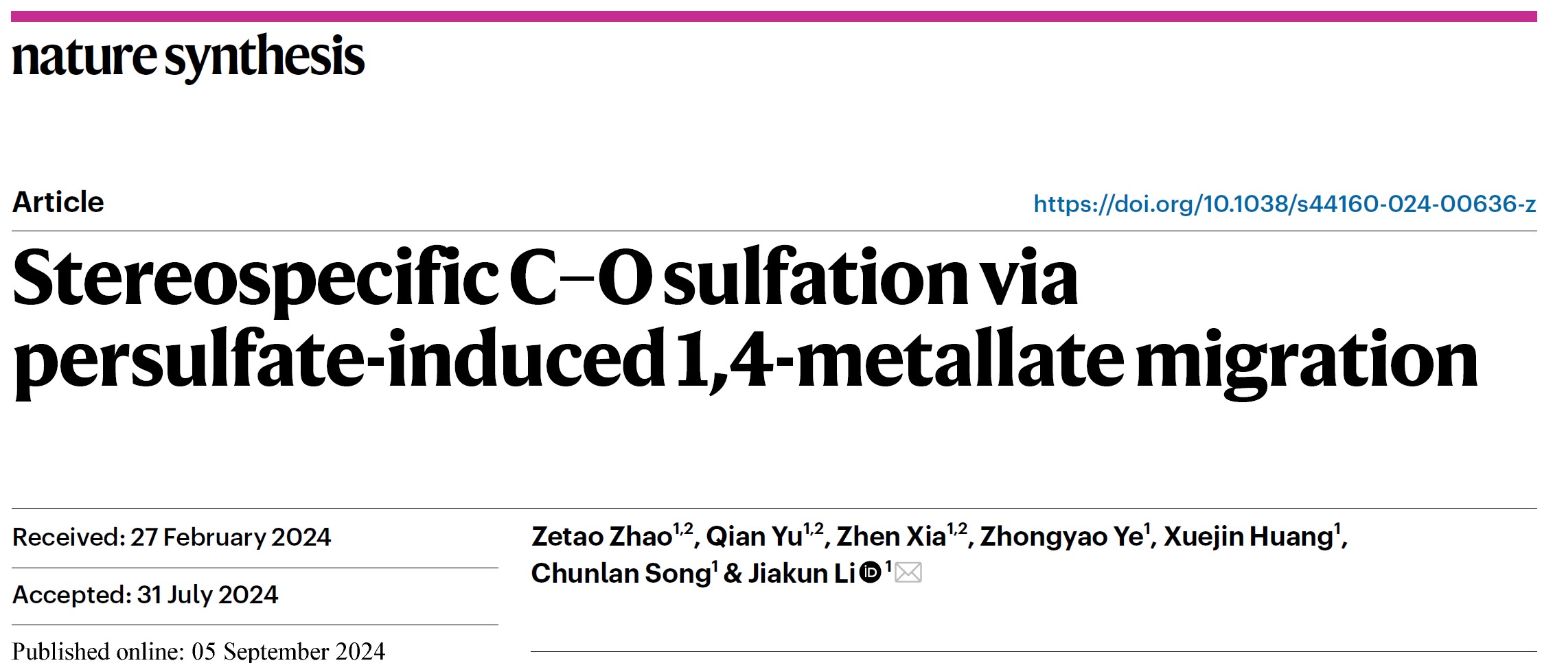 2024/09/10化学化工学院李家昆教授课题组在硫酸化领域取得重要进展硫酸化是生物体内重要的翻译后修饰,参与生命的所有过程,与人类健康和疾病密切相关。硫酸盐结构与功能的高度复杂性赋予其巨大信息容量,目前无法通过遗传密码简单推衍。因此,硫酸化研究成为后基因组时代的重要...