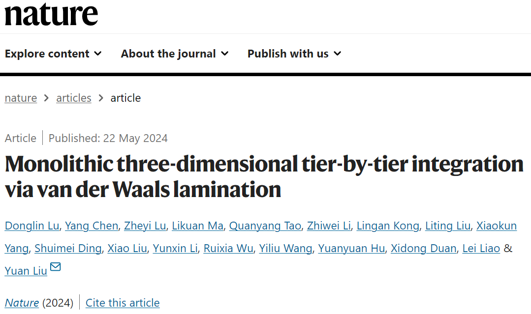 2024/05/23物电院刘渊教授团队在Nature发文报道单芯片三维集成研究新进展三维集成是通过在垂直方向上将多个独立的芯片或功能层堆叠在一起的器件系统,能够实现逻辑、存储和传感等功能的垂直集成和协同工作,是后摩尔时代的重要技术路线。目前商用的三维集成主要是通过封装技术将多芯片...